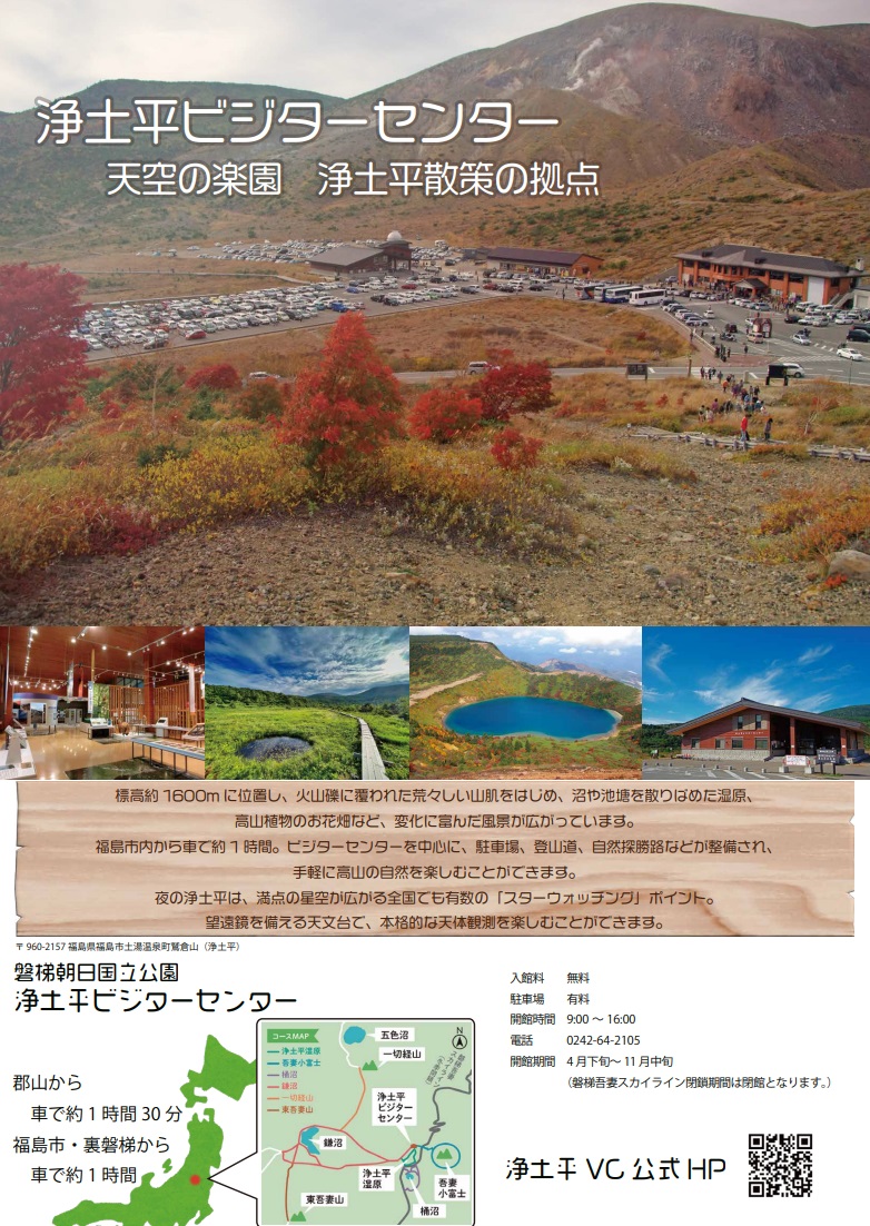 磐梯朝日国立公園に位置する「浄土平」の豊かな自然や動植物・歴史文化について展示解説しており、